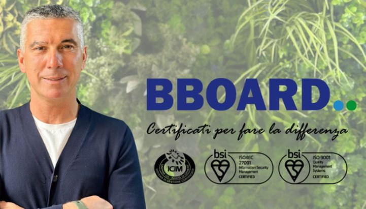 Il flusso operativo di BBoard è sostenuto da un sistema di certificazioni, conseguite nel 2025 e confermate per il 2026 a seguito del positivo esito degli audit periodici. L’impegno del Gruppo in ambito ESG si concretizza nell’ottenimento della certificazione per la Parità di Genere UNI/PdR 125:2022, della ISO 9001:2015 per i sistemi di gestione della qualità e della ISO/IEC 27001:2022 per la gestione della sicurezza dei dati e delle informazioni, a conferma dell’adozione di standard elevati di affidabilità e trasparenza a beneficio di partner e stakeholder.