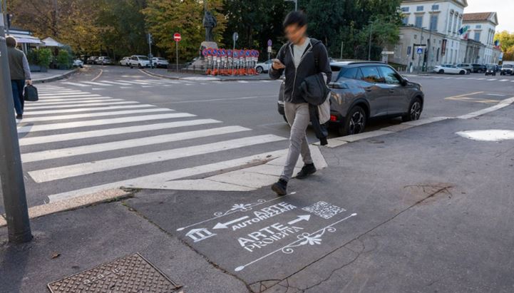 La campagna porta la firma di Nicolò Carrassi, Founder & Creative Director di RUDE, e si fonda su un’idea tanto semplice quanto potente: trasformare lo spazio urbano in un’esperienza interattiva. Sul marciapiede, proprio dove solitamente i visitatori attendono in coda, una doppia freccia segna due direzioni: a sinistra “Arte autorizzata”, che conduce all’ingresso del museo, e a destra “Arte proibita”, un percorso alternativo accompagnato da un QR code che rimanda alla pagina del libro. Un gesto che trasforma lo spazio urbano in un bivio: un luogo di scelta e riflessione sul confine tra conformismo e libertà creativa. Una provocazione gentile, ma decisa, che invita i passanti a scegliere se seguire il percorso dell’arte “autorizzata” o lasciarsi tentare da quella “proibita” e reinventa la promozione culturale, trasformandola in un’esperienza urbana, immediata, partecipata.