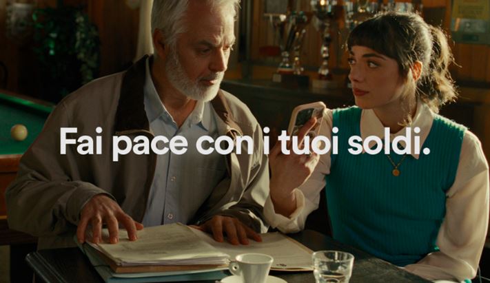 Lo spot racconta proprio questo passaggio. Un protagonista scopre, grazie a sua figlia, che i soldi che ha appena investito stanno sostenendo attività lontane dai suoi valori. Un momento semplice, quotidiano, che si trasforma in presa di coscienza. Allo stesso tempo, la presenza della figlia apre a un livello ulteriore di lettura: un invito alle nuove generazioni a entrare nelle scelte finanziarie familiari, portando consapevolezza e competenze, anche grazie a una maggiore familiarità con gli strumenti digitali.