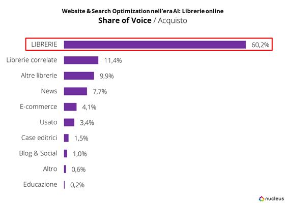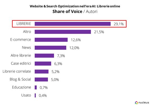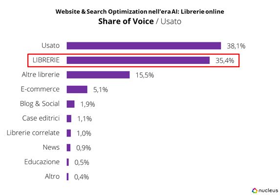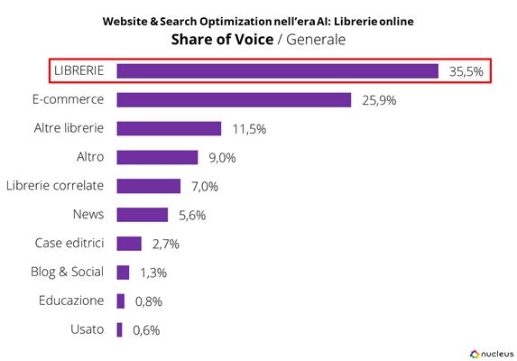 Il settore delle librerie online rappresenta un mercato particolarmente competitivo. Questo perché coinvolge un ampio numero di operatori anche molto eterogeneo, come: grandi catene ed e-commerce specializzati, come alcuni di quelli menzionati nello studio, siti di rivendita dell'usato, e-commerce generalisti come Amazon, il quale copre un’ampia fetta della visibilità organica per molte delle keyword selezionate, siti informativi ed editoriali.