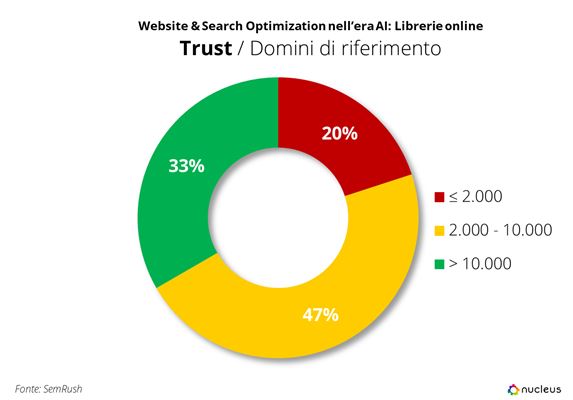 La Domain Authority è un punteggio sviluppato dal tool SemRush (uno degli strumenti utilizzati per le rilevazioni) che misura l'autorevolezza di un dominio all'interno dei motori di ricerca.