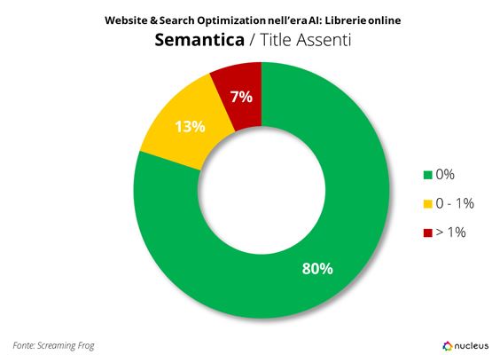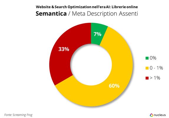 Tuttavia, la maggior parte degli operatori fatica su altri aspetti altrettanto importanti: l'ottimizzazione semantica dei principali meta tag, il numero e la qualità di domini di riferimento e la gestione degli errori interni nel catalogo. Le librerie online sono una tipologia di e-commerce dalla gestione SEO particolarmente complessa, per via dell’alto numero di schede prodotto, ricambi e fine scorta frequenti e la difficoltà nel gestire gli outofstock in modo da non perdere la potenziale vendita. I siti con scarsa autorevolezza e molti titoli potrebbero anche incorrere in difficoltà d’indicizzazione.