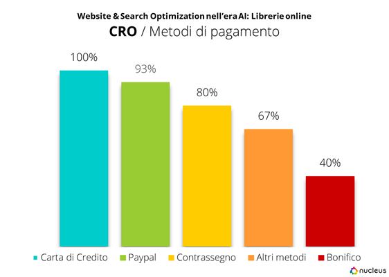 Anche la Conversion Rate può essere potenzialmente migliorata con piccoli accorgimenti, dato che al momento risulta ottimizzata principalmente per gli aspetti più tradizionali del settore. Alcuni dei principali punti di miglioramento possono essere i metodi di contatto e di pagamento alternativi e checkout più rapidi. Inoltre, il tema dell'Accessibilità digitale risulta affrontato da una buona parte dei siti, ma un'altra importante fetta non sembra ancora ancora attrezzata.