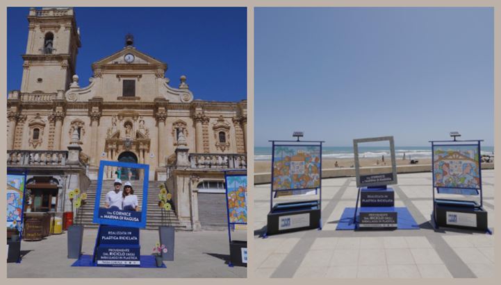 Le prime due tappe, tenutesi in contemporanea, si sono svolte mercoledì 26 giugno in Sicilia a Marina di Ragusa e Scicli, dove è stato ufficialmente inaugurato l’inizio del tour con una conferenza stampa che ha coinvolto le principali istituzioni delle due città e con la presentazione dell’ormai iconica opera d’arte legata al progetto: una cornice in plastica riciclata volta a celebrare gli scorci più belli della città e, simbolicamente, del nostro Paese.