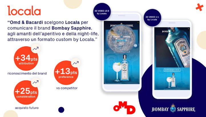Locala ha collaborato con OMD per supportare Bacardi durante il periodo estivo con la comunicazione del prodotto Bombay Sapphire, per generare awareness sul target di riferimento rispettivamente al loro gin per il Gin&Tonic, ideale per il momento dell’aperitivo o per un drink nelle serate estive.