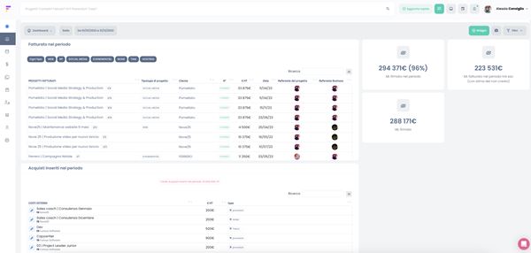 [Nell'immagine: un'anteprima personalizzata di alcuni dati finanziari per monitorare la fatturazione sui progetti, gli acquisti e i diversi margini (firmato, ML, MOL) relativamente a un periodo selezionato - clicca per ingrandire]