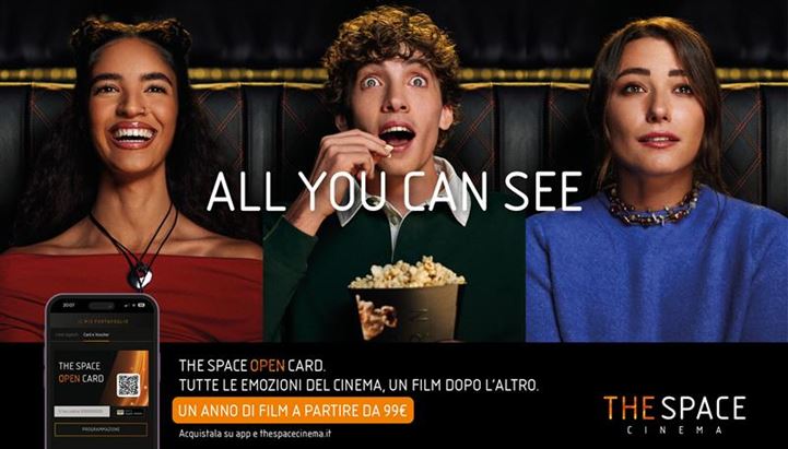 Nasce così The Space Open Card, che permette di andare al cinema ogni giorno per un anno, anche più volte al giorno. Una formula “All You Can See”, quindi, concept scelto come concept di campagna.