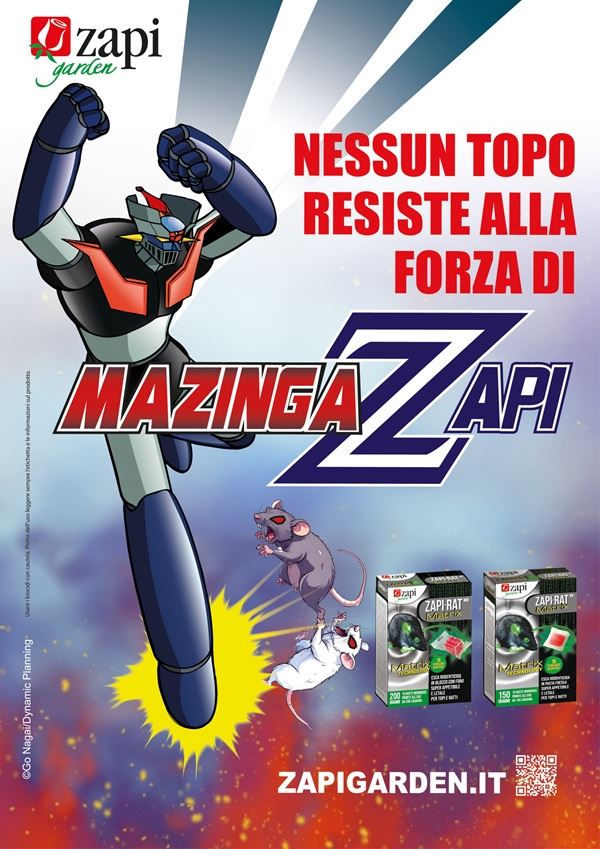 La campagna “Mazinga Zapi” sarà diffusa su stampa quotidiana mensili e giornali di settore e verrà declinata nel punto vendita, con una presenza significativa anche sui social. Sono previsti materiali POP dedicati nei principali garden center, consorzi agrari e negozi specializzati, oltre ad altre iniziative che valorizzeranno l’immaginario del robot Mazinga in chiave contemporanea.