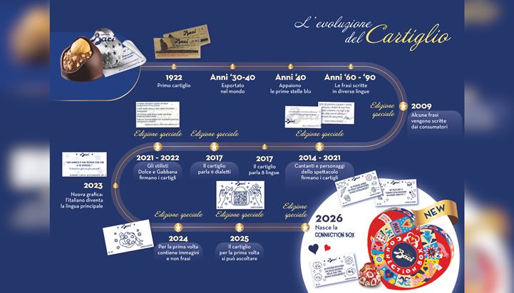 “La Connection Box nasce dal desiderio di sollecitare le persone a ritagliarsi uno spazio di qualità per parlarsi”, spiega Chiara Richiedei, Marketing Manager Baci Perugina. “Oggi le relazioni sono piene di messaggi, ma spesso mancano occasioni di dialogo autentico. Trasformare il cartiglio in una domanda è stato per noi un modo naturale per invitare le persone ad aprirsi all’altro ed ascoltarsi”.