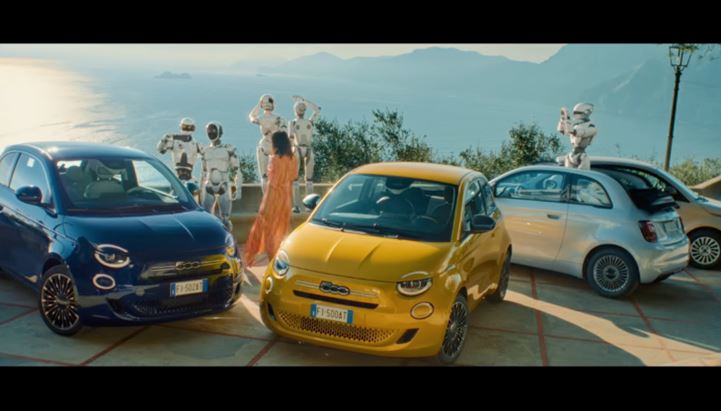 “Chiunque tu sia, umano o androide, quando guidi una Fiat 500 porti con te un pezzo d'Italia”, dice l’azienda a proposito della produzionepoubblicitaria. Perché “nessuno può resistere alla Dolce Vita italiana. Nemmeno un robot. Concediti una pausa, prova la gioia e vivi lo stile di vita italiano al volante della nuova Fiat 500 Ibrida. Dall’Italia con Amore”.