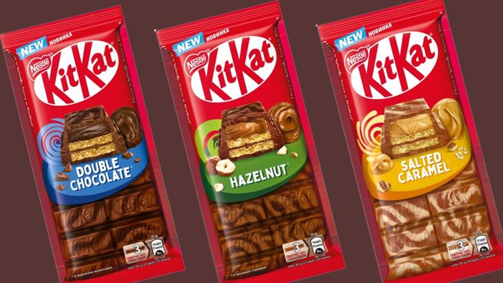 Le nuove Tavolette KitKat rompono gli schemi tradizionali del break, introducendo un prodotto capace di conquistare anche i consumatori più giovani, attraverso un’esperienza multisensoriale completamente nuova, ottenuta dal delizioso contrasto di texture tra il guscio di cioccolato e i ripieni cremosi. “Il design è moderno e accattivante, la forma è nuova - dichiara l’azienda -, ma ciò che resta immutato è l’elemento distintivo che ha reso KitKat iconico: il wafer croccante”. Tre le ricette: Caramello Salato, Nocciola e Doppio Cioccolato.