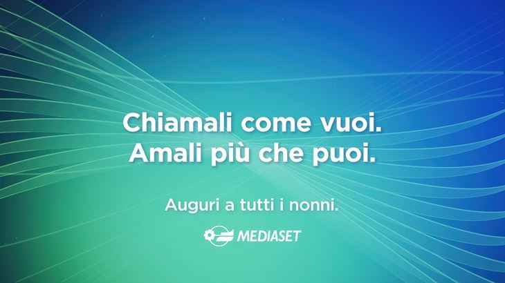 In occasione della Festa dei Nonni – che si celebra giovedì 2 ottobre – Mediaset lancia la campagna istituzionale “Chiamali come vuoi, amali più che puoi”, un omaggio a tutti i nonni e all’importanza che ricoprono all’interno della famiglia. Lo spot sarà trasmesso l'1 e il 2 ottobre su tutte le reti del Gruppo.