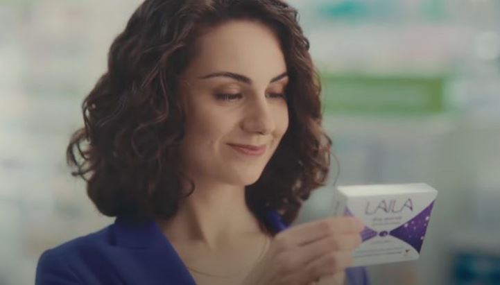 Nello spot Menarini per Laila ideato dall’agenzia di De Martini, Nenna e Meneghetti, accompagnato da una cover rifrasata di “Gloria”, la celebre canzone di Umberto Tozzi, si alternano varie situazioni, in cui persone diverse per caratteristiche ed età, vivono momenti di spensieratezza. Alle loro azioni, corrisponde ogni volta un effetto, per il quale la parola ansia si dissolve o si scompone, liberando il paesaggio dalla propria presenza: il “Sollievo Laila” che viene anche sottolineato da una frase del jingle. In conclusione, il claim: Laila. Per sentirsi più leggeri.