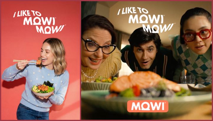 Il marchio norvegese di salmone Mowi torna on air e debutta al cinema con la nuova campagna I Like To Mowi, declinata in due soggetti. Una pianificazione articolata, a cura di Media Italia, parte dell'omonimo network internazionale di agenzie media indipendenti, che vedrà il brand protagonista con una preview sul grande schermo dal 29 aprile al 13 maggio e sulle piattaforme videostreaming (Sky On Demand, Netflix, Amazon e Disney+) dal 4 al 24 maggio.