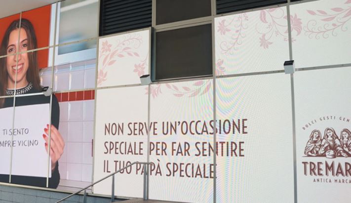 In parallelo, è stata prevista una pianificazione digital out of home sui ledwall presenti in piazza, in cui Tre Marie ha lasciato spazio ai consumatori per dare visibilità ai loro personali messaggi di dedica ai propri papà, rafforzando così il concetto che per celebrare le persone a noi care non serva un’occasione speciale.