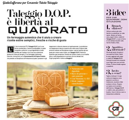 La creatività nasce dalla volontà di promuovere e raccontare tutte le qualità del Taleggio DOP, destagionalizzandolo e proponendolo all’interno di ricette primaverili ed estive, in continuità con la strategia digital e social media. Comunicare al pubblico il Taleggio come formaggio estremamente versatile, perfetto per essere servito tutto l’anno, in purezza e all’interno di piatti gustosi, è questo l’intento dell’intero progetto.