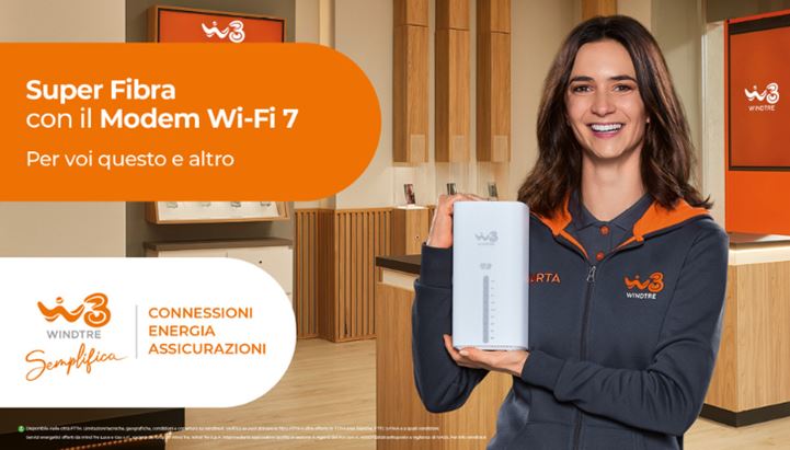 Nei negozi Windtre è possibile attivare “Super Fibra”, che prevede navigazione illimitata fino a 2,5 Gigabit, modem Wi-Fi 7 incluso e 12 mesi di Amazon Prime. L’offerta è proposta a 24,99 euro al mese per i clienti Windtre mobile.