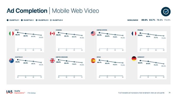 Tuttavia, l'ad completion (completamento degli annunci) per gli annunci video è aumentato in tutto il mondo, riflettendo l'attenzione degli annunci video rispetto agli annunci display.