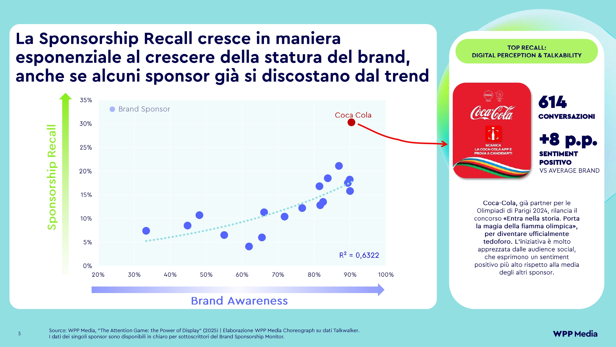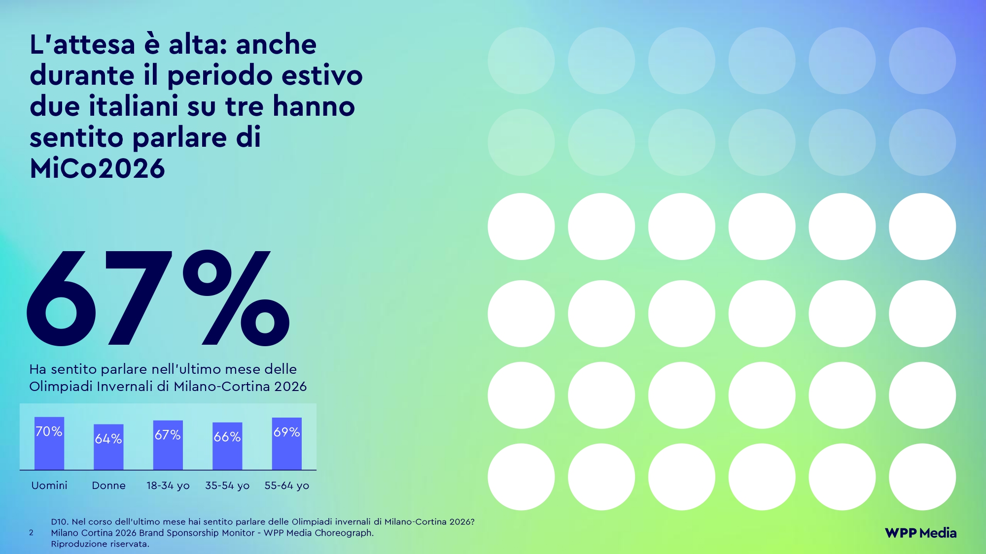 Nonostante i Giochi siano ancora lontani, la memoria di marca è già attiva: il 58% degli italiani ricorda spontaneamente almeno un brand associato all’evento.