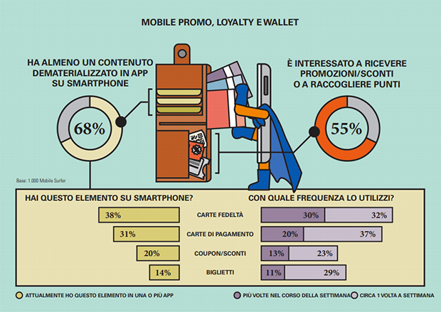 il 55% dei mobile surfer è interessato a ricevere promozioni, offerte e raccogliere i punti fedeltà dallo smartphone. Inoltre
