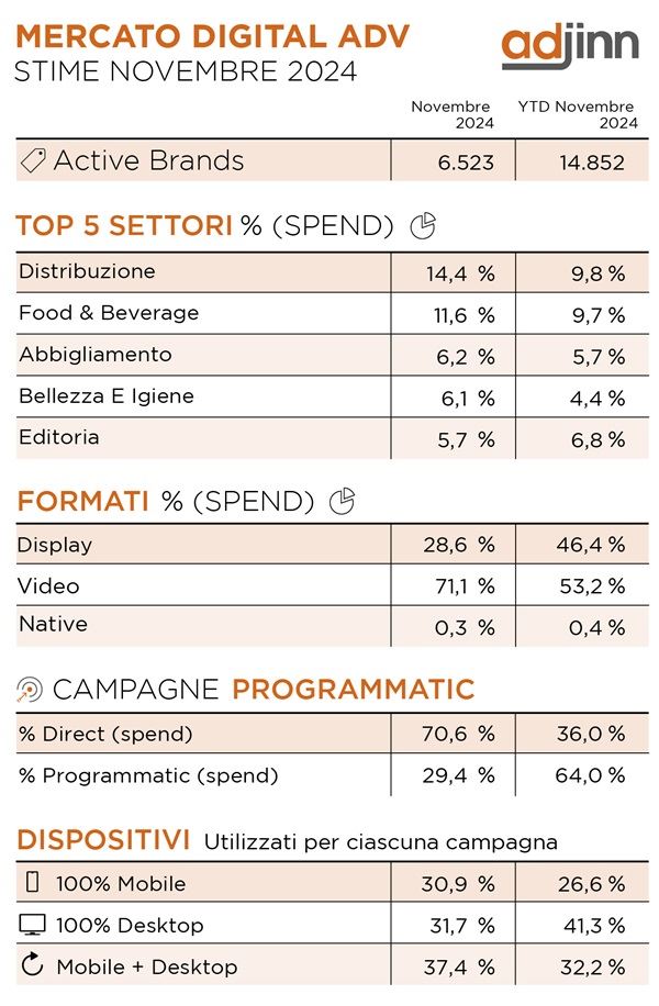 Secondo le stime di Adjinn, questi settori dominano la classifica degli investimenti pubblicitari, trainati dalle promozioni legate al Black Friday e al Cyber Monday.
